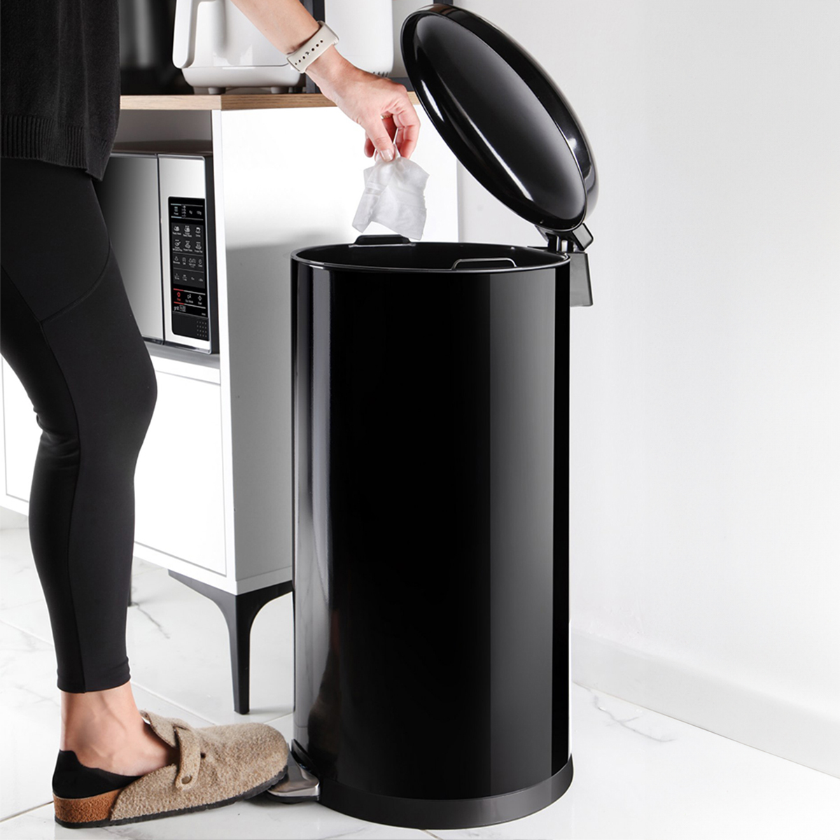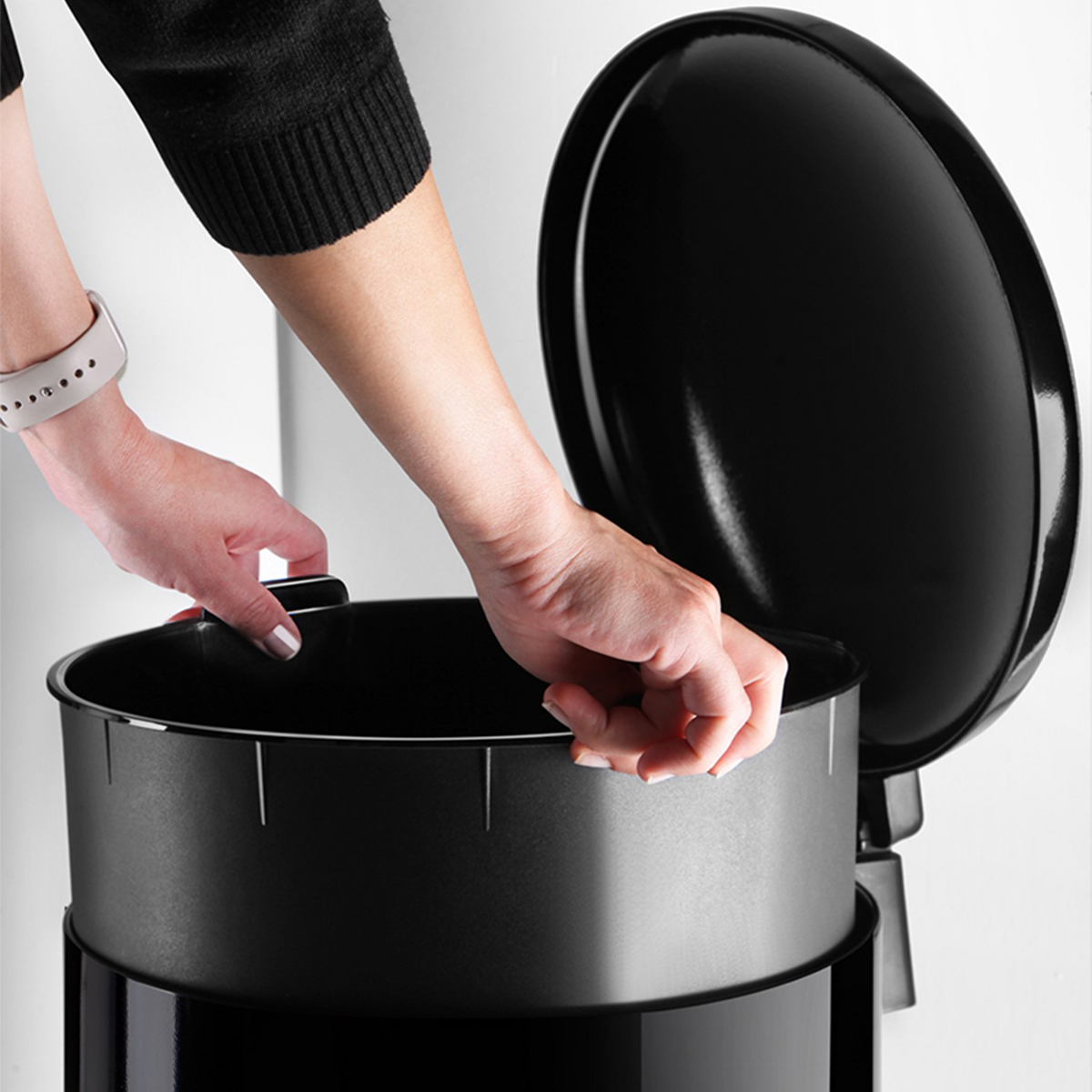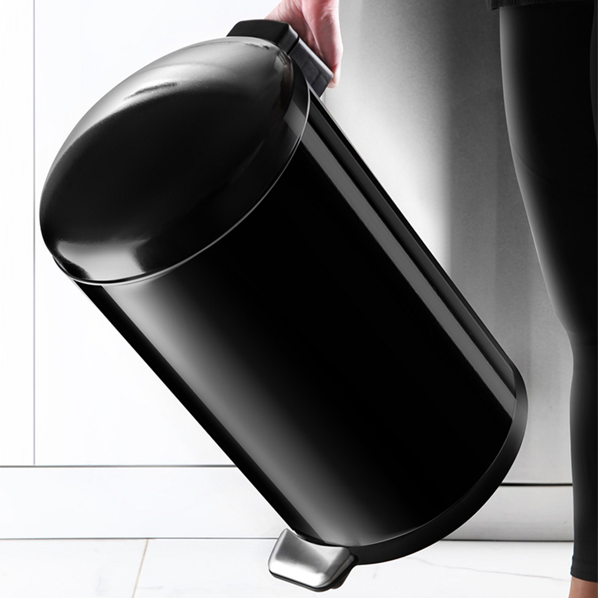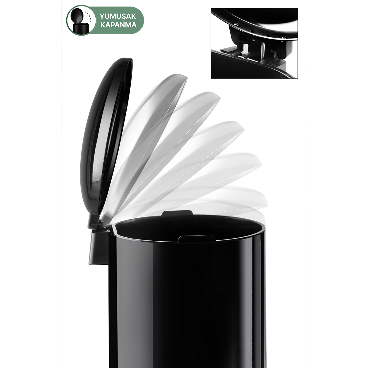 BOMBE KAPAKLI ÇÖP KOVASI 40LT SİYAH İÇ KISIM SİYAH