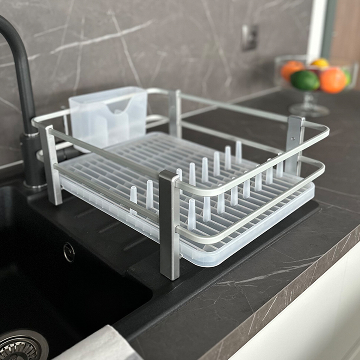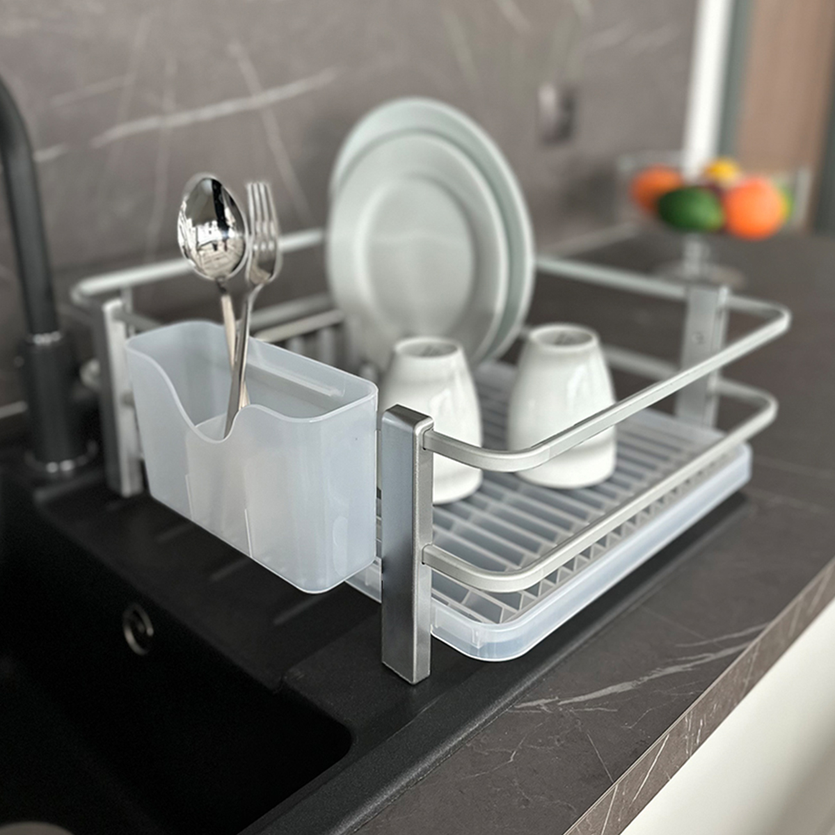 Durable, Easy to clean Rust-proof aluminum frames High bars for cookware Removable cutlery storage Inner design is easy to use for little spoons Can take 8 plates The accessories no included.