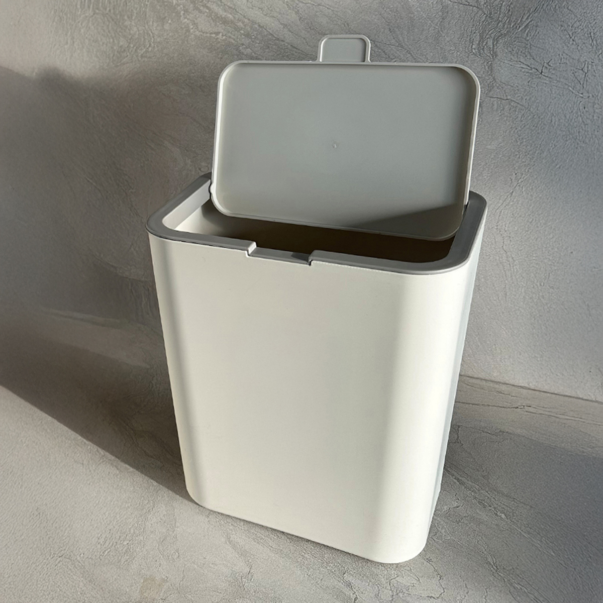 The Flip Trash Bin brings organization to every corner of your home with its compact size and modern design. It can be used in the kitchen, bathroom, or office as a trash bin or an organizer. Its durable plastic body ensures long-lasting use, while its spacious capacity makes it practical for everyday needs. The refreshing green tone adds a modern touch to your living spaces. Product Details Material: Plastic Color: Beige Pieces: 1 Bin Capacity: 6 Liters Dimensions: Height: 25 cm Width: 22 cm Depth: 15 cm